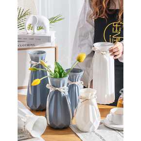 网红简约欧式仿瓷玻璃花瓶客厅透明水培百合插花桌面客...
