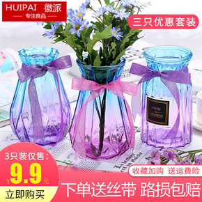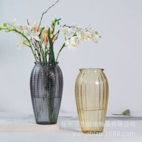 新款玻璃花瓶摆件透明彩色水培植物干花花瓶客厅装饰插...
