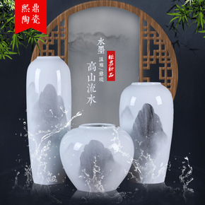 新中式抽象水墨山水大气飘逸群鸟装饰画 电视客厅背景...