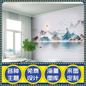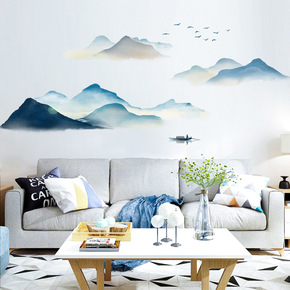 书房墙贴画贴纸客厅卧室背景墙装饰山水风景墙纸壁纸自...