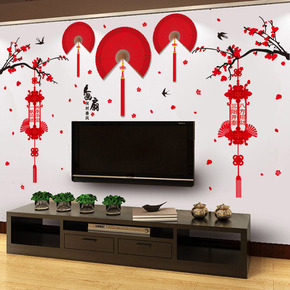 客厅装饰新年贴纸沙发电视背景墙自粘春节室内过年墙面...