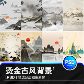 壁画贴纸自粘山水画中式风水墙贴画墙纸壁纸客厅电视背...