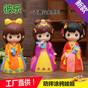 【新款古典】摔不坏石膏彩绘娃娃搪胶娃娃涂色白胚di...
