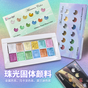 单颗固体水彩颜料补充装水彩单块固体颜料替换装小块水...