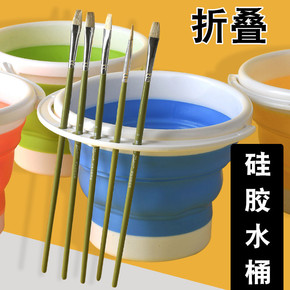折叠伸缩硅胶水桶小号学生美术专用涮笔筒水粉画水彩国...