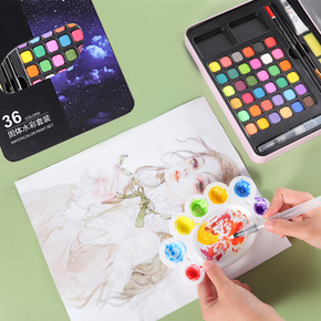 固体水彩颜料红铁盒装18色 24色固体水彩套装送自...