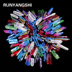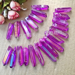 电镀天然打孔水晶柱 紫色镀彩单尖水晶柱 摆件能量柱...