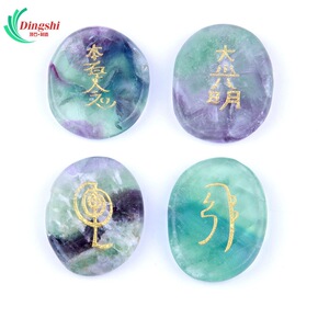厂家定制天然彩萤石薄石片 绿莹石雕刻灵气能量符号批...
