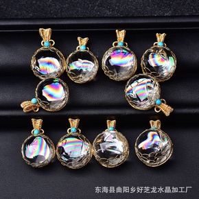 厂家直销天然七彩白水晶球吊坠胶花彩虹球镶嵌吊坠...
