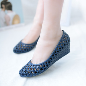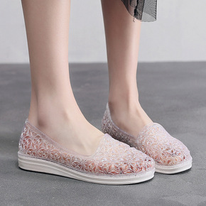 1夏季新款韩版凉鞋女水晶塑料沙滩鞋洞洞鞋女坡跟妈妈...