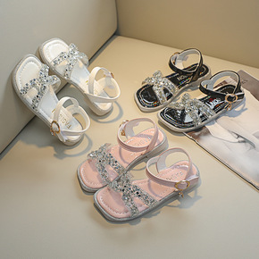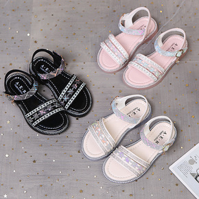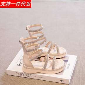 女童凉鞋2022夏季新款小女孩中大童软底水钻休闲儿...