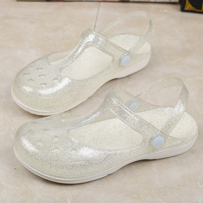 夏季新款水晶洞洞鞋女式沙滩休闲平跟平底软底防滑包头...
