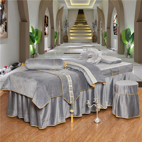 美容床罩纯色四件套高档美容院专用水晶绒欧式按摩套...