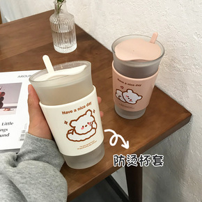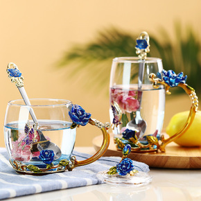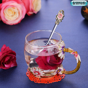珐琅彩水晶玻璃水杯耐热泡花茶杯子带盖带把办公室男女...