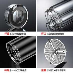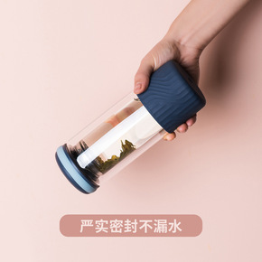新款351双层水晶杯匡迪玻璃杯高硼硅水杯茶水分离杯...