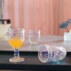 彩虹凤尾花浮雕玻璃杯琥珀色水晶玻璃水杯茶杯酒杯果汁...
