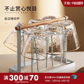 日式树皮纹玻璃杯咖啡杯威士忌杯家用饮料杯...