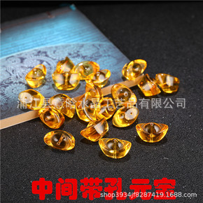 批发新品中间带孔元宝珠帘挂件水晶琉璃带孔金元宝工艺...