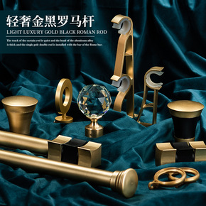轻奢金黑罗马杆加厚单双窗帘杆 墙顶装打孔铝合金窗帘...