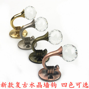 窗帘墙钩 窗帘挂钩 欧式壁钩 锌合金刻花圆头水晶钩...
