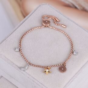 欧美饰品批发镶嵌锆石月亮星星圆盘多坠拉豆抽绳可调节...