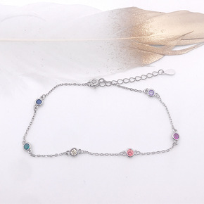 S925纯银多彩色锆石手链女日韩小清新气质甜美风手...