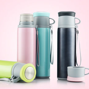 水杯玻璃杯304不锈钢保温杯户外便携提绳旅行壶男女...