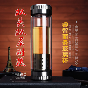 耐热两头通泡茶师双层玻璃杯带过滤网双头车载泡茶玻璃...