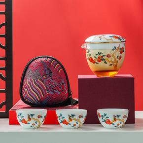 好柿发生柿子快客杯户外随身泡茶陶瓷一壶三杯便携旅行...