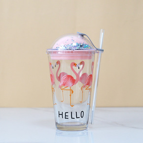 创意双层玻璃水杯办公室泡茶杯学生便携带盖杯子家用透...