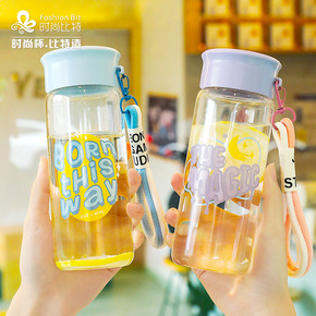 时间刻度玻璃水杯子女高颜值ins风透明外带便携大容...