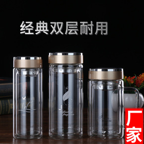 水晶玻璃杯双层加厚泡茶杯便携车载耐热水杯礼品定制刻...