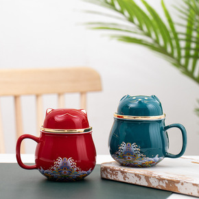 景德镇陶瓷茶杯茶水分离杯子办公室家用带盖过滤日式大...