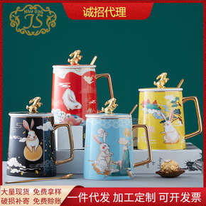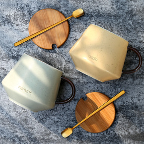 马克杯带盖勺现代简约北欧陶瓷杯礼品杯印刷LOGO个...
