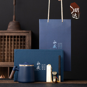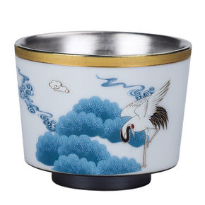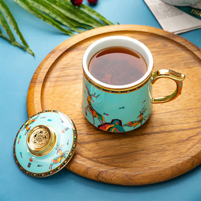 青花瓷杯子马克杯带茶漏泡茶过滤杯银水杯999纯银骨...