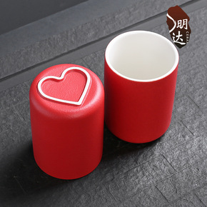 陶瓷洗漱杯家用喜庆伴手礼陶瓷情侣红色漱口杯子激光雕...