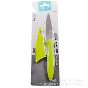 强人带套水果刀 6104不锈钢削皮刀 厨房多功能切...