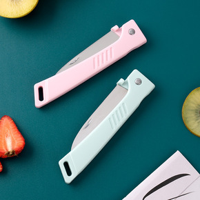 现货塑料柄厨房折叠水果刀随身锋利不锈钢折叠小刀削皮...