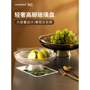 北欧轻奢水果盘摆件客厅家用茶几套装玻璃糖果盘个性干...