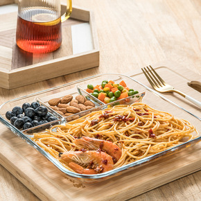 钢化玻璃盘子饺子盘带醋碟家用水饺盘耐热餐盘餐具分隔...