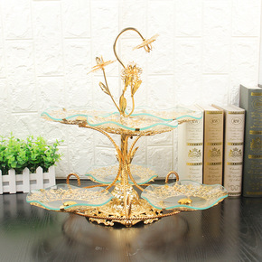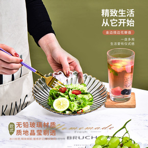 轻奢玻璃水果盘客厅家用茶几网红美式托盘创意零食篮摆...
