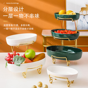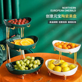 轻奢茶几多层水果盆客厅陶瓷果盘网红家用创意干果糖果...