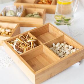 早生贵子篮子竹木干果盒分格糖果盒带盖小吃创意收纳盒...
