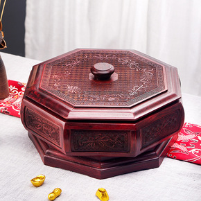 中式实木果盘缅甸花梨果盒家用客厅茶几零食收纳盒红木...