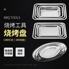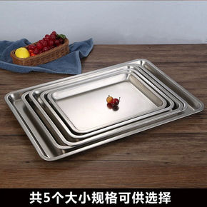 餐盘特厚304不锈钢方盘烧烤盘托盘蒸饭盘平底快餐盘...