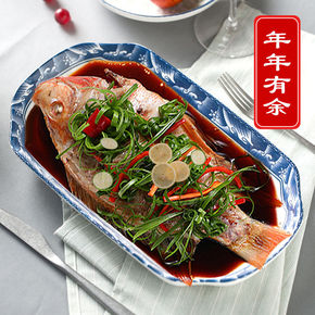 鱼碗鱼盘子家用创意清蒸鱼菜盘陶瓷餐具大号网红盘子一...