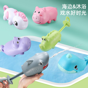 泼水节抽拉式动物沙滩水枪玩具戏水萌趣独角兽鲸鱼动物...