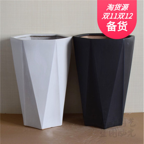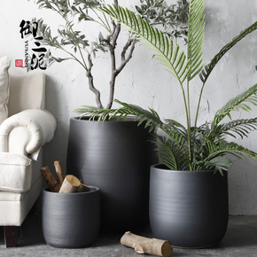 绿植北欧花盆现代简约花瓶室内植物装饰缸黑色陶瓷水培...