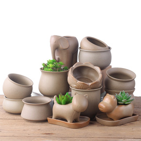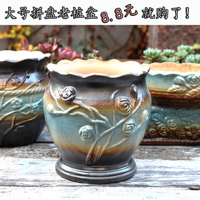 多肉个性手绘老桩群生拼盘粗陶陶瓷花盆特价清仓透气包...