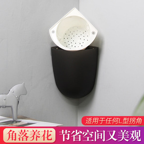 挂壁水培壁挂花盆懒人绿萝墙壁塑料挂式墙上直角转角悬...